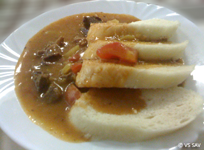 Šošovicový prívarok, volské oko 1ks, varené párky 2 ks, chlieb |