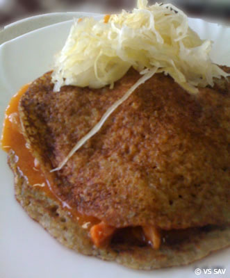 Zbojnícka pochúťka v zemiakovej placke, šalát |